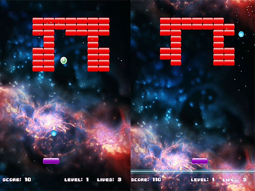 It can be moved left or right with touch. The main active element is the Energy Ball, which can bounce off the side and top walls.