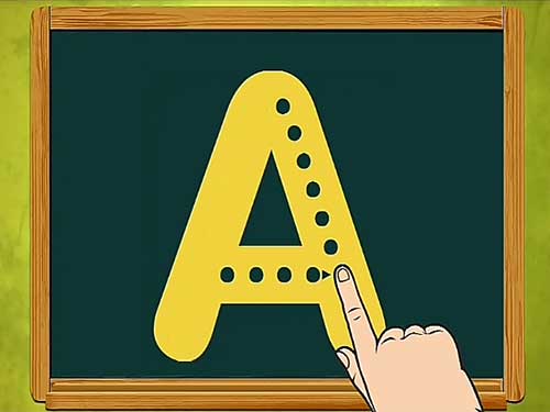 After connecting dots of each english alphabet an example word alongwith an image is also show along with the voice over for easy learning.