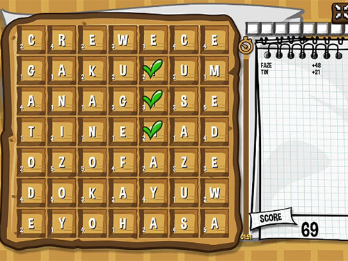Waffle is an HTML5 Word game. The goal of the game is to find / compose as many words as possible in two minutes!